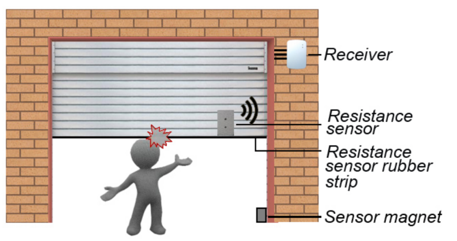 2.ローラードアは半円上向きに動作し、抵抗センサーのゴムストリップが抵抗を受けると停止します。